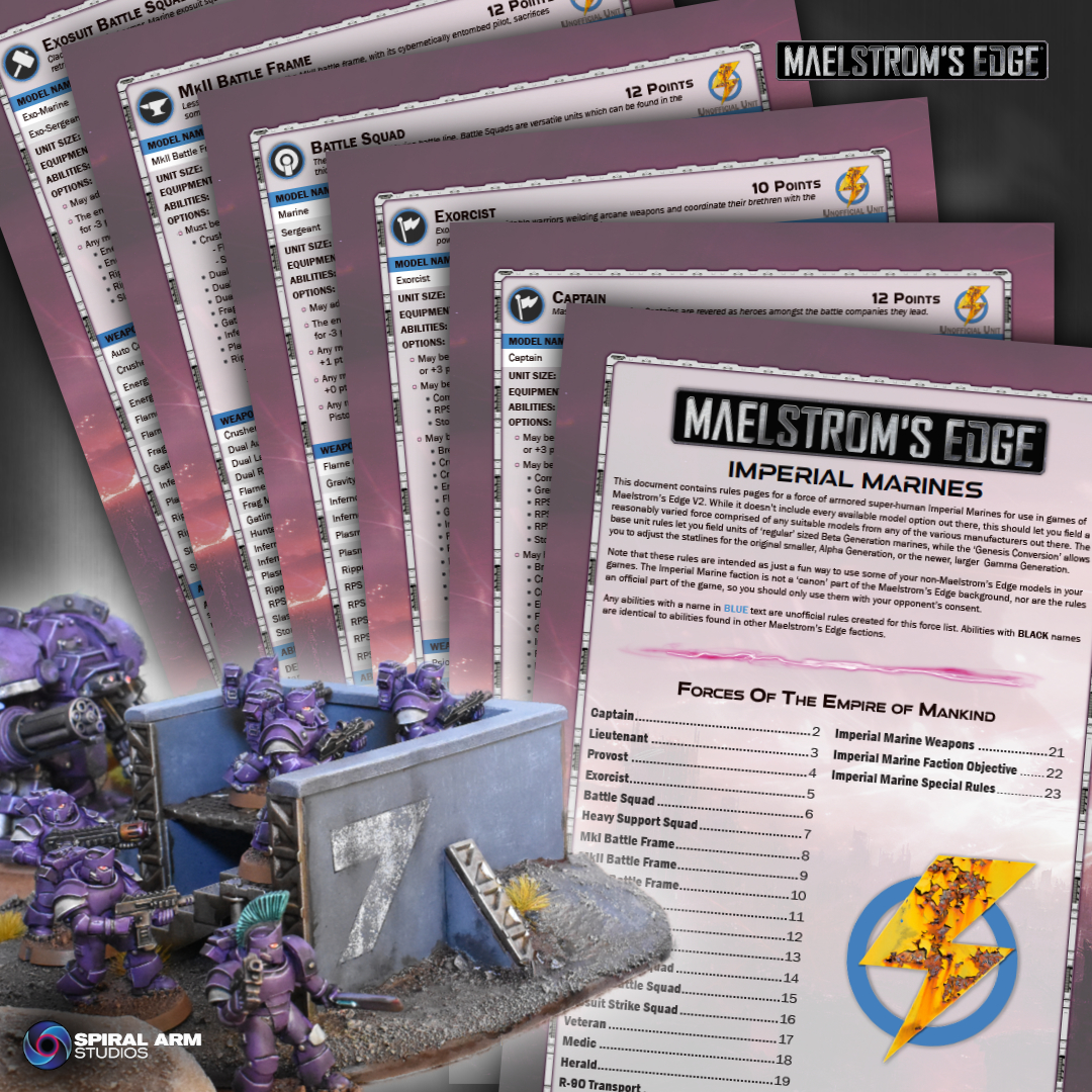 As promised, I've finished dusting off my Imperial Marine homebrew rules and added in some new bells and whistles so you can bring your forces of power-armored supersoldiers to the battlefields of Maelstrom's Edge V2!